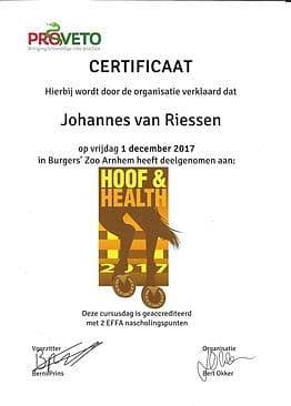 Interesse voor het paard en zijn hoeven maakt dat ik nog elk jaar wordt bijgeschoold en deelneem aan cursussen aangeboden door o.a. de Nederlandse Vereniging van Hoefsmeden.