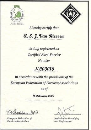 Interesse voor het paard en zijn hoeven maakt dat ik nog elk jaar wordt bijgeschoold en deelneem aan cursussen aangeboden door o.a. de Nederlandse Vereniging van Hoefsmeden.